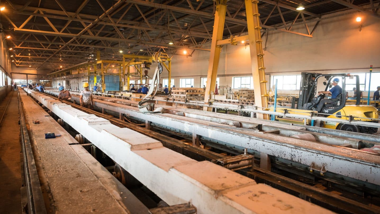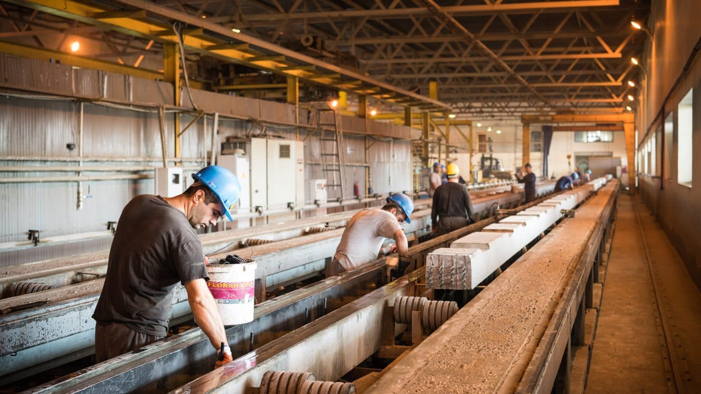 The plant produces two types of products: concrete sleepers of B70 type and reinforced concrete beams for turnouts. The annual production capacity of the plant, which involves about 200 people, is 511000 units of concrete sleepers of B70 type and 120 sets of diverted tracks per year. That, in its turn, means meeting the needs of sleepers for the construction of approximately 270 km of new railways.
